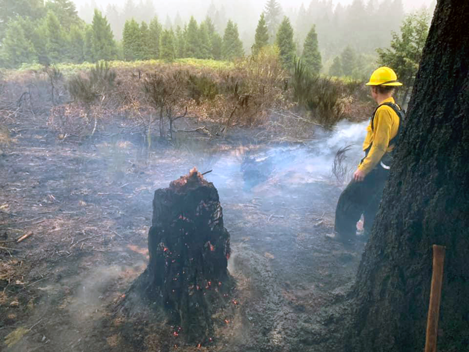 “With the help of North Douglas, Lane Fire Authority, ODF, air support and good ole Oregon rain, we were able to get a good knock down. (The) last unofficial estimate is around 10-15 acres in size. ODF will stay on scene mopping up hot spots overnight and possibly into tomorrow. We also have a dozer on site to create a fire line around the perimeter. Thank you to all of our supporting agencies for the quick response.”