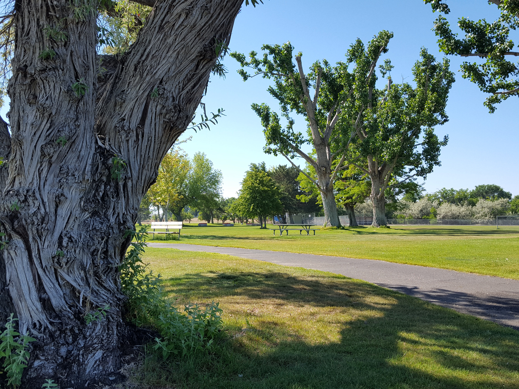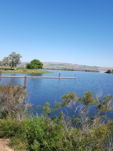 Anyway, jumping back to the present, we were pleasantly surprised to learn about the hidden gem in Boardman. The RV park is about 20 acres of beautiful green lawns on the banks of the Columbia. As we watch barges plying their ways to ports both east and west, we try to imagine the conditions and wonder experienced by the Lewis and Clark Expedition that traveled through here almost 220 years before. Right next door is a marina with sailboat slips and ramps. As we walked there yesterday morning with our dogs in 95-degree heat, we passed a giant board where entrants and results of the annual Boardman Fishing Derby is recorded. Walking past the marina, we saw many more acres of beautifully manicured lawns on