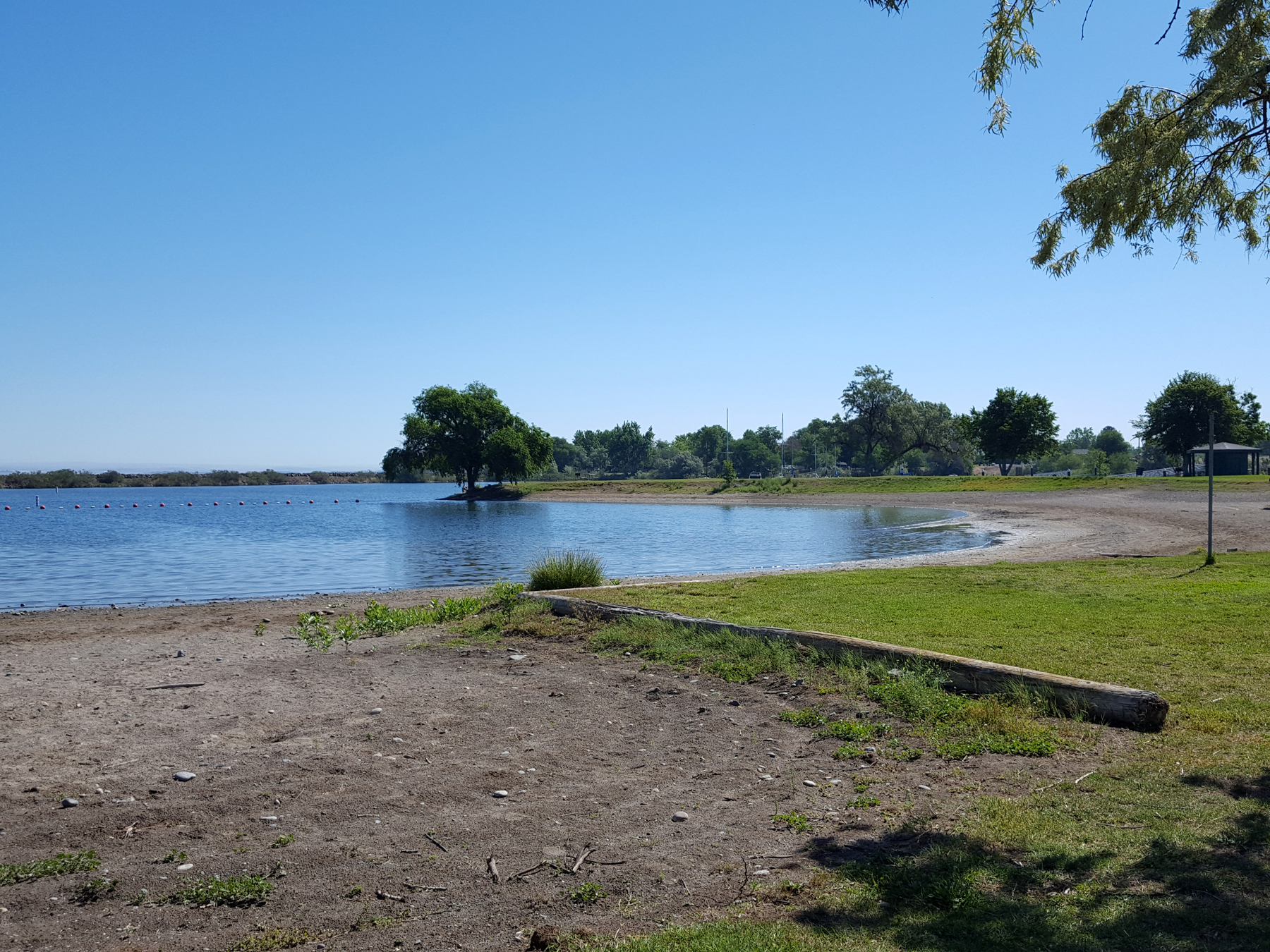 which we could see a children’s playground; a shaded area of championship-quality horseshoe pits; a well-maintained baseball field; and a lovely white gazebo sitting next to a panorama of the river and the Washington shore in the background where, I’m sure, many weddings have taken place. Fishermen, with poles in hand walked the black-topped paths to find their favorite fishing beaches. There’s a swimming hole in one area for those who want to swim in the calm, sheltered portion of the river and, best of all, in a large, finger inlet, is a huge, roped-off wading area for children and dogs on leashes.