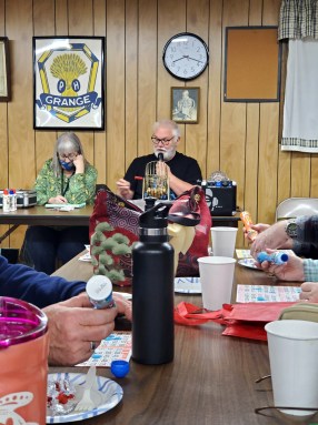 As bingo caller, Randy Eschleman brings a lot of fun and laughter to the game at the Lorane Grange, and his wife, Marti, helps to keep everything organized.