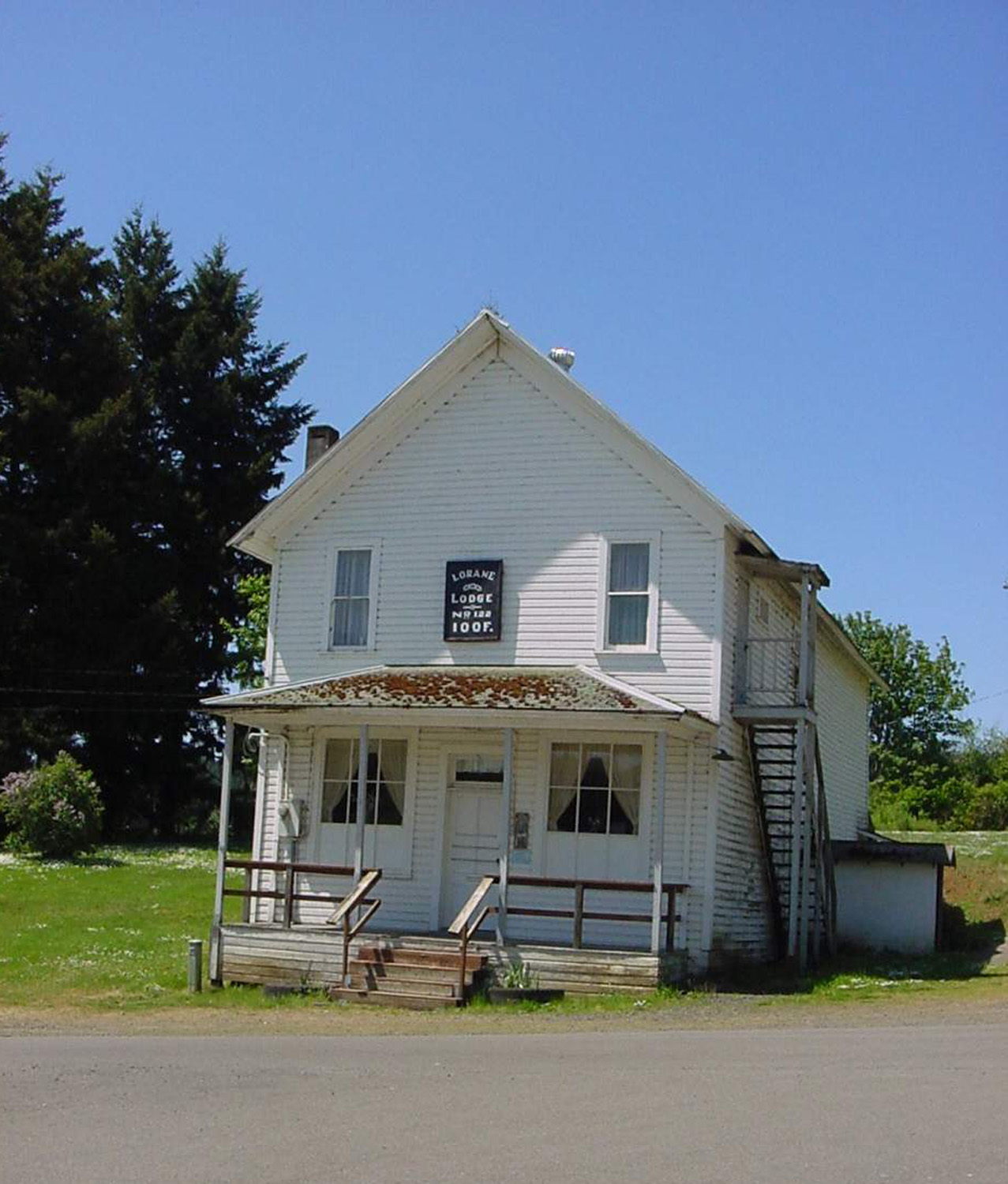 Much of the Lorane news centers around the activities and events sponsored by and/or held at the Lorane Grange, but there is another organization that has remained active and constant for well over 100 years. The Lorane Rebekah Lodge is a beautiful, old, white 2-story building which stands sentinel on the hill next to the Lorane Church. The building was first erected in 1898, and used mainly by the Lorane International Order of Odd Fellows (I.O.O.F.) #122, and later, by its associated lodge for women, the Rebekah Lodge #219. Both organizations were joined by many of the original families who settled in Lorane… the Crow(e)s, Wingards, Mitchells, Fosters, Hawleys, Foleys, Zumwalts, Farmans, McCullochs, Lees, Colemans, Addisons, Russells, Doaks, Inmans, and so many more.
